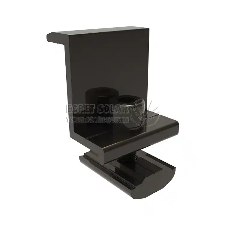 TheZaciski końcowe zCzapla Słonecznapodobnie jak blok środkowego docisku musi być dostosowany do grubości ramy komponentu (zwykle 30-40mm), może byćDostosowanewedług różnych rozwiązań inżynieryjnych i jest wykonany z anodyzowanego stopu aluminium, aby uniknąć korozji ramy komponentu i jednocześnie pełnić rolę izolacyjną.