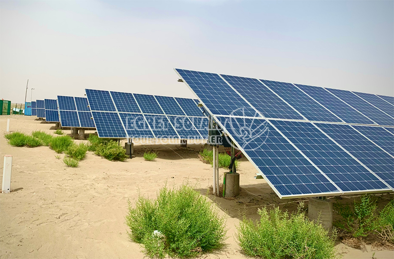 Jako członek branży fotowoltaicznej,Czapla Słoneczna wnosi także swój skromny wkład w globalną czystą energię. NaszSolarny aluminiowy system montażu naziemnego ISystem uziemienia słonecznego ze stali węglowej są bardzo odpowiednie do warunków rozmieszczenia na Bliskim Wschodzie. Elektrownie fotowoltaiczne nie tylko dostarczają zieloną energię, ale także stanowią barierę przed wiatrem i piaskiem w okolicy. Jest to sytuacja korzystna dla obu stron w zakresie produkcji energii i przywracania środowiska, a także dostarcza nowych pomysłów i doświadczeń w zakresie globalnej kontroli piasku fotowoltaicznego.